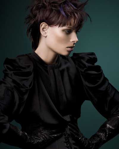 Collectie najaar/winter 2009-2010, Kimm Koffijberg - De expressieve stijl en donkere tinten uit de jaren ‘80, gecombineerd met de verfijnde kleur- en kniptechnieken van nu: de nieuwe haarcollectie van Kimm Koffijberg toont een geraffineerde punk chic beeld met veel ruimte voor eigen interpretatie.