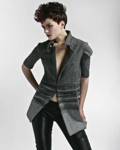 Logisch dat deze vrouwen graag kiezen voor een kapsel waarmee ze verschillende kanten op kunnen. Kimm creëerde coupes die onderling in lengte variëren, om zo veel mogelijk rekening te houden met de gezichtsvorm en wensen van de modellen. Uitgangspunt bij alle kapsels is echter dat vrouwelijkheid voorop staat! De haarlagen zijn zacht ingevuld en hoewel de contouren scherp zijn gehouden, hebben zij toch een zachte uitstraling. Kimm wisselt disconectie (delen van het haar die niet op elkaar aansluiten en dus niet vloeiend doorlopen) af met kortere en langere gedeelten. Hierdoor ontstaat een gestructureerde volume-opbouw die is aangepast op de structuur van het haar. Dit maakt het mogelijk om het haar heel gemakkelijk in verschillen vormen en op verschillende manieren te stylen.