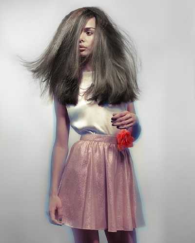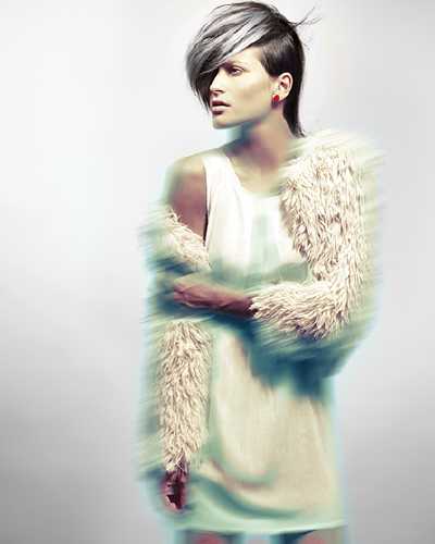 Door de gebruikte kniptechnieken is asymmetrie in de haarlagen aangebracht en is tegelijk goed gekeken naar de balans in de knippartijen. Vooraf hebben Kimm en haar team bepaald waar luchtigheid en zachtere lagen in de coupes moesten komen. Juist op deze plaatsen wilden zij ook kleur tot uiting brengen.Door met knippen veel gradaties in de haarlengten aan te brengen en de textuur (slag, krul) goed te benutten, zijn ronde vormen gecreëerd en ontstaat een zachte uitstraling.