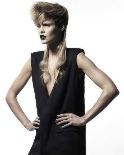 The models are themselves in their most powerful form. The division of volume that has been cut into the hair, the chic, ‘oily’ and contrasting colorings, and the styling merge together and emphasize the unique identity of each woman. The colorings combine light and dark tones, blondes and blacks, shades of grey and soft pastels. Starting from the structure, the cuts, colorings, and color accents are put in place to emphasize the hairstyle. “I-Dentity is a statement about our craftsmanship as hairdressers”, says Kimm Koffijberg. The collection has been nominated for the Coiffure Award 2013* – category Female hairstyles Noord-Holland.
